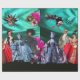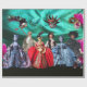 Expresivos y extravagantes títeres venecianos de !700 , brillantes y espléndidos trajes rojos azules, coloridas, artísticas máscaras venecianas con plumas de pavo real y tela de seda verde azulada verde azul, Collage Digital Original y Diseño Gráfico de Bulgan Lumini - Baldesign3d (c)