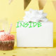 Apple Inside. Foto de un núcleo de manzana verde y el texto - Apple Inside. Una manzana al día mantiene al médica en la pobreza. Impresiones y regalos para diversión y buen humor. Envuelto papel para cualquiera.