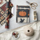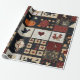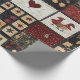 Este papel de envoltura presenta una estética de retazos de arte folclórico, arreglada en una rejilla de bloques cuadrados que mezcla elementos de aplicación y elementos de pieza. Entre los motivos que se mencionan se incluyen una calabaza naranja audaz, un cuervo negro, corazones rojos, pollos y florales estilizados, mientras que los bloques encajonados muestran patrones geométricos tradicionales de tejido como estrellas, diamantes y cruces. El uso de rojos profundos, cremas y azules/negros oscuros, acentuados con telas estampadas como puntos de polka, flores y sólidos texturados, crea un estilo cálido y rústico. Perfecto para la decoración de una casa de campo, la vida rural, las artesanías primitivas y los edredones de temporada, este diseño encarna el encanto de los tejidos tradicionales con un ambiente acogedor y hecho a mano.