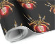 Araña mecánica, de vapor punk con oro, engranajes de latón y una lámpara de vidrio roja sobre un fondo negro. Estilo Steampunk.