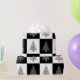 Cuadrados modernos en blanco y negro y árboles de Navidad
