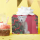 Animal genérico relleno con árbol de Navidad en miniatura decorado en rojo