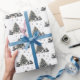 Celebre la temporada con este elegante papel de regalo de árbol de Navidad que presenta un patrón repetitivo de un sofisticado árbol de Navidad en acuarela en negro y blanco. Cada árbol está sutilmente acentuado con un ligero tono verde y rodeado de regalos y delicados copos de nieve que caen, lo que da al diseño un toque festivo y refinado.