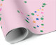 Añada un toque de color a la temporada de vacaciones con este papel de envolvimiento rosado con un moderno patrón de árbol de Navidad colorido.