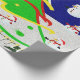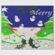 Este diseño presenta un árbol de navidad verde con cinta roja, dorada, verde y blanca y bolas de Navidad decorando el árbol. Los hombres de nieve y los holly decoran este diseño. "Feliz Navidad" está impreso en este diseño en oro y blanco. Este papel de envolvimiento está disponible en diversos estilos y bordes y fondos de colores.
