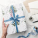 Papel de Regalo Árbol de Pino Mínimo Feliz Navidad con pinos nevados y una fuente delicada que dice 'Feliz Navidad'