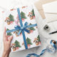 Pino verde acuarela con un lindo perro y regalos de Navidades en blanco. Se puede cambiar el color de fondo.