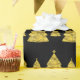 Elegante, elegante y moderno Navidad envuelto en papel, con un diseño dorado del árbol de Navidad en un fondo negro. Aqui Poppy tiene tarjetas de Navidad para complementar este diseño en nuestra tienda.