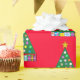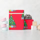 Papel De Regalo Árbol verde de Navidad en rojo: