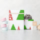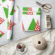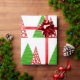 Árbol verde y árbol rojo con puntos de polka blanco sobre Navidades de fondo blanco envolviendo papel.