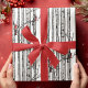 Este moderno papel de envolvimiento de invierno y de temporada navideña incluye abedules dibujados a mano con pájaros cardenales rojos sobre ramas de tinta negra, con un elegante fondo blanco.
