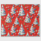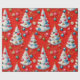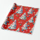 Papel De Regalo Árboles de Navidad blancos retro rojo