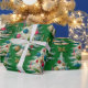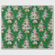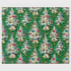 Papel De Regalo Árboles de Navidad blancos retro verde