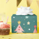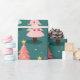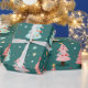 Colores divertidos decoran bonitos árboles de Navidad que desfilan sobre este papel de envoltura de corazón claro. Detrás de los coloridos árboles festivos se esconde un fondo verde azul verde azulado oscuro, rosa, azul claro, con estrellas amarillas y baudias multicolores. Estos son de un patrón de acuarela retro.