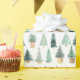 Bonitos árboles de Navidad verdes y dorados en este papel de regalo de fiesta.