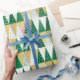 Papel De Regalo Árboles de Navidad verdes y dorados