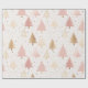 Papel De Regalo Árboles navideños suaves rosados y dorados