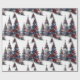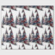 Papel De Regalo Árboles patrióticos de Navidad blancos y azules ro