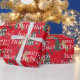 Este colorido patrón de árbol de Navidad al estilo personalizado con un fondo rojo personalizado incluye Navidades, árboles, tigres lindos, y la tipografía blanca Feliz Navidad y Felices Fiestas en un patrón impecable.