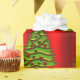 Un bonito y Navidades coloridos envueltos con un patrón de árboles verdes de Navidad sobre un vívido fondo rojo metálico para agregar un toque de color y estilo festivo a su envoltura de regalo en esta temporada navideña.