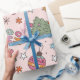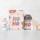 Un divertido y caprichoso patrón de Navidades con árboles festivos, adornos coloridos y el texto de "Ho Ho Ho Ho" en un fondo pastel. ¡Ideal para divertirse en la decoración y los regalos!