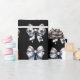 El papel envolvente presenta un fondo negro elegante, lo que aporta un contraste audaz a los gráficos únicos de las bolas deportivas transformadas en arcos de coqueta. Cada pelota (baloncesto, balones de fútbol, pelotas de béisbol y softball) se ha reimaginado creativamente, con sus formas retorcidas y curvadas en delicadas formas de arco. Los bordes de las bolas se hinchan como lazos de cinta, mientras que sus patrones (como los parches en blanco y negro de la pelota de fútbol o el naranja del baloncesto) permanecen visibles, mezclando los elementos deportivos con una estética suave y femenina.
