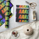 Este vibrante, emocionante y divertido diseño de papel envolvente presenta el nombre común "AARON" con un colorante inspirado en el gradiente del espectro del arcoiris. También tiene un fondo de color negro. Un papel de envolver colorido como este podría ser una forma divertida de envolver un regalo o regalo que le regalan a alguien llamado Aaron. [~Z0000354]