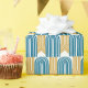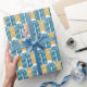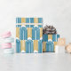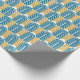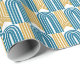 Este papel de envoltura tiene un diseño art deco de arcos y de arriba abajo Ys repitiendo a lo largo del diseño en turquesa y amarillo sobre un campo de blanco. ¿Quieres colores diferentes? Mándame un mensaje.