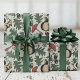 Este festividad de animales de bosque envueltos en papel presenta ilustraciones hechos a mano de ardillas, bellotas y setas con tinta negra contra un elegante fondo verde sabio.