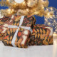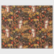 Papel De Regalo ardillas y flora otoñales en marrón oscuro