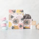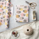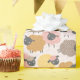 Pequeña oveja con estampado en colores suaves: rosa, beige, tonos de arena y amarillo sobre fondo crema