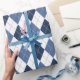*** Patrón editado 12/3/21 para *ojalá* se repita sin problemas cada 36"—vea aquí: https://www.zazzle.com/blue_white_argyle_plaid_wrapping_paper-256414209760870121 **** Este patrón geométrico de papel de envoltura de regalo presenta un patrón de recubrimiento azul oscuro, azul claro y blanco con "costura" gris que se extiende diagonalmente a través de las formas de diamante - por katz_d_zynes