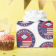 Insignia de Arkansas con bandera de Arkansas y bandera de los colores de Estados Unidos, forma redondeada. Emblema de Arkansas. Sello de Arkansas. Colección de Estados Unidos.