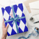 Papel de envoltura diseñado con un patrón real de arlequín azul y blanco de tamaño extra grande. Personalizar el color blanco de una manera fácil.