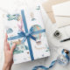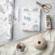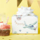 Para un niño pequeño, el papel de envolvimiento perfecto para un Baby Shower con un avión y globos de aire caliente.