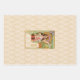 Esta elegante imagen de tarjeta postal Art Nouveau anuncia la llegada de la primavera. Es un exuberante despliegue de color, patrones y flores. Una joven toca una rama de árbol en flor en medio de ménsulas estilizadas, bordes y colgantes. La imagen original se ha combinado con un fondo estampado para complementar los colores y el diseño de la tarjeta postal antigua.