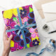 Arte de Flor Brillante Abstracta. La obra original fue dibujada a mano y pintada con pintura acrílica sobre lienzo. Este diseño tiene un fondo negro añadido.