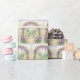Un delicado arco adornado con flores de glicinia de lavanda en cascada y hortensias enmarcan un sereno camino de jardín