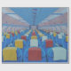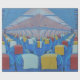 Este diseño presenta un cuadro del artista chileno Gregorio Undurraga. Muestra el interior de un avión. Los colores son claros: los asientos del avión son azules, los taquillos de arriba son rosas, y los reposacabezas alternan en amarillo, blanco y rojo.