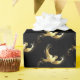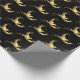 Pájaro brillante, dorado, pintado artistalmente sobre un fondo negro