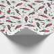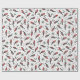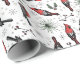 Este papel de envolvimiento de vacaciones de naturaleza festiva presenta un divertido patrón de aves cardinales rojas dibujadas a mano, pino, bayas rojas y estrellas diminutas, todo con un elegante fondo blanco.
