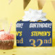Este diseño de papel envolvente incluye un mensaje como "¡EL CUMPLEAÑOS 32 DE STEPHEN!", en el que el "32" tiene un aspecto de color falso/imitación dorado, y con el nombre y el "CUMPLEAÑOS" en un tipo de letra divertido y audaz. El nombre es personalizable y el fondo es azul. El envolvimiento de papel como este podría ser usado cuando se le dan regalos de cumpleaños a alguien en celebración de su 32 cumpleaños. [~Z0000209]