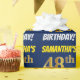 Este diseño de papel envolvente incluye un mensaje como "¡CUARENTA CUARENTA Y CUMPLEAÑOS DE SAMANTHA!", con el "48º" con un aspecto de color falso/imitación de color dorado, y con el nombre y el "CUMPLEAÑOS" en un divertido y audaz tipo de letra. El nombre se puede personalizar y el fondo es azul. El envolvimiento de papel como este podría ser usado cuando se le dan regalos de cumpleaños a alguien en celebración de sus cuarenta y ocho años. [~Z0000209]
