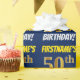 Este diseño de papel envolvente incluye un mensaje como "¡50 CUMPLEAÑOS DE FIRSTNAME!", con el "50" con un aspecto de color falso/imitación de oro, y con el nombre y el "CUMPLEAÑOS" en un tipo de letra divertido y audaz. El nombre se puede personalizar y el fondo es azul. El papel envuelto como este podría ser usado cuando se le dan regalos de cumpleaños a alguien en celebración de su cincuentenario. [~Z0000209]