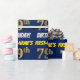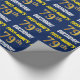 Este diseño de papel envolvente incluye un mensaje como "¡CUMPLEAÑOS 79 DE PRIMER NOMBRE!", mientras que el "79" tiene un aspecto de color falso/imitación de color dorado, y con el nombre y el "CUMPLEAÑOS" en un tipo de letra divertido y audaz. El nombre se puede personalizar y el fondo es azul. El papel envuelto como este podría ser usado cuando se le dan regalos de cumpleaños a alguien en celebración de su cumpleaños setenta y nueve. [~Z0000209]