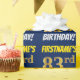Este diseño de papel envolvente incluye un mensaje como "¡FIRSTNAME’S 83rd BIRTHDAY!", con el "83rd" con un aspecto de color falso/imitación de oro, y con el nombre y "BIRTHDAY" en un tipo de letra divertido y audaz. El nombre se puede personalizar y el fondo es azul. El envolvimiento de papel como este podría ser usado cuando se le dan regalos de cumpleaños a alguien en celebración de sus ochenta y tres años. [~Z0000209]