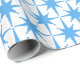 El patrón de las estrellas atómicas modernas de mediados del siglo XX es el papel de envolvimiento azul claro y blanco. Elegante, de buen gusto, moda, elegante, divertido, audaz, sencillo diseño de estreno con una estética modernista retro-contemporánea de mediados de siglo. Ideal para el invierno, Navidades, Hanukkah, Chrismukkah, o en cualquier momento. Eleva tu regalo. Por Kierkegaard Design Studio.