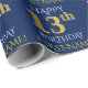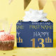 Este diseño de papel envolvente presenta un mensaje como "FELIZ 13 CUMPLEAÑOS", con el "13" en apariencia de oro falso/imitación. También tiene un nombre personalizado y un fondo de color azul. Tal vez podría ser usado cuando se envuelven regalos para el décimo tercer cumpleaños de alguien. [~Z0000135]