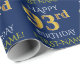 Este diseño de papel envolvente presenta un mensaje como "FELIZ 93º CUMPLEAÑOS", con el "93º" en apariencia de oro falso/imitación. También tiene un nombre personalizado y un fondo de color azul. Tal vez podría usarse cuando se envuelven regalos para los noventa y tres años de alguien. [~Z0000135]