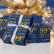 Este diseño de papel envolvente presenta un mensaje como "FELIZ 99º CUMPLEAÑOS", con el "99º" con una apariencia de oro falsa/imitación. También tiene un nombre personalizado y un fondo de color azul. Tal vez podría usarse cuando se envuelven regalos para el cumpleaños noventa y nueve de alguien. [~Z0000135]